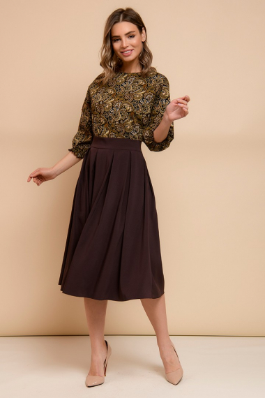 Фото товара 21161, темно-коричневое платье с принтованным верхом