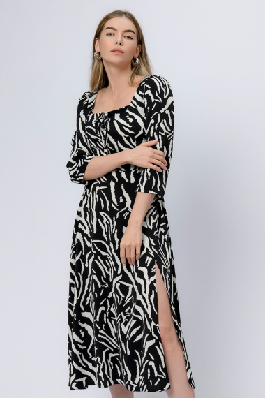 Фото товара 22229, платье миди белое с принтом и вырезом каре